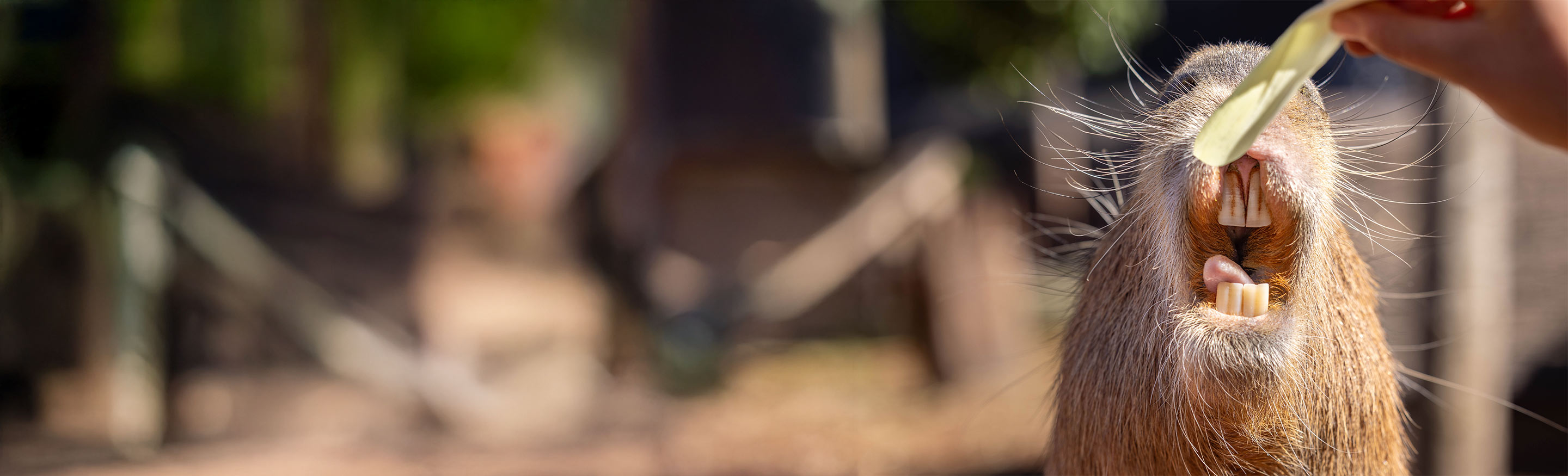 Sometimes referred to as the hippopotamus of the rodent world, water is a source of life for the semi-aquatic Capybara. With webbed feet to help navigate the waters of the Amazon and eyes, ears and nose placed perfectly towards the top of their large head, swimming, napping, diving, and mating in the water becomes an easy task for this curious creature.