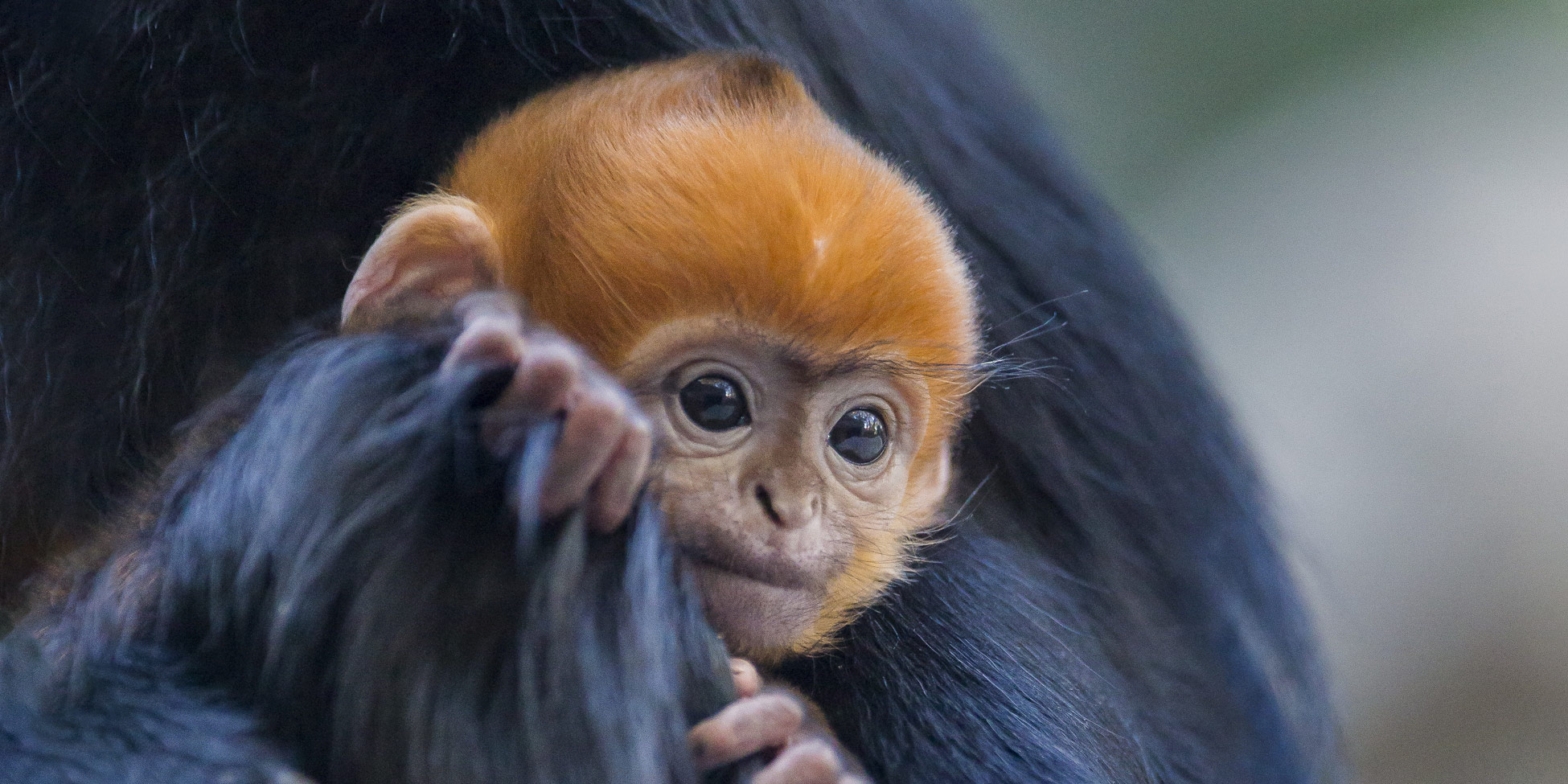 Like all young Francois Langurs, Didi was born with distinctive bright orange hair, a stark contrast to his parents’ black colouring. It’s believed the colour distinction makes it easier for adults to identify and look after infants.