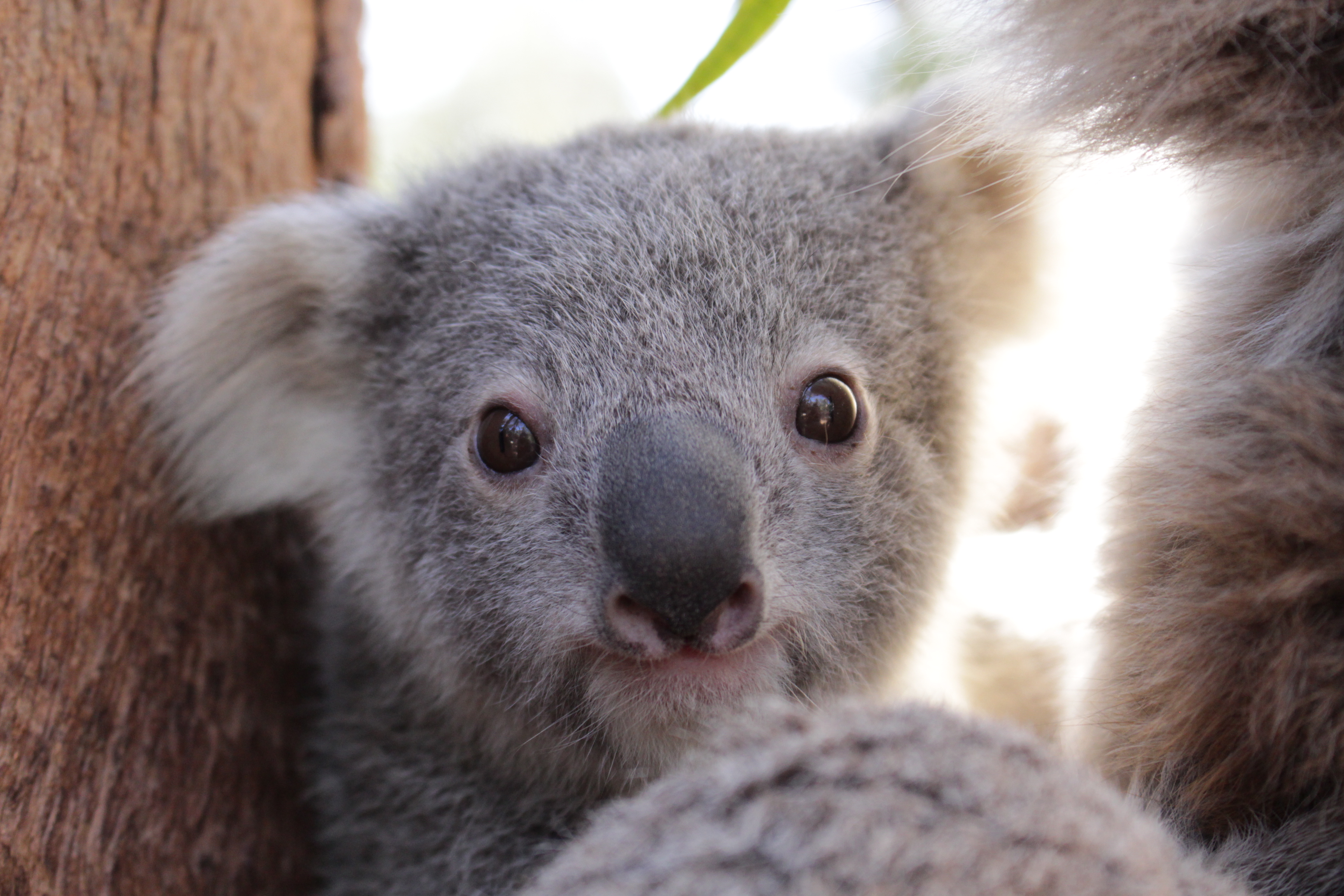 Thunder is starting to test out eucalyptus leaves and transitioning from his mother’s milk and pap (pap is a fluid released from the mother Koala to help transition the joey from milk to the leaves.)