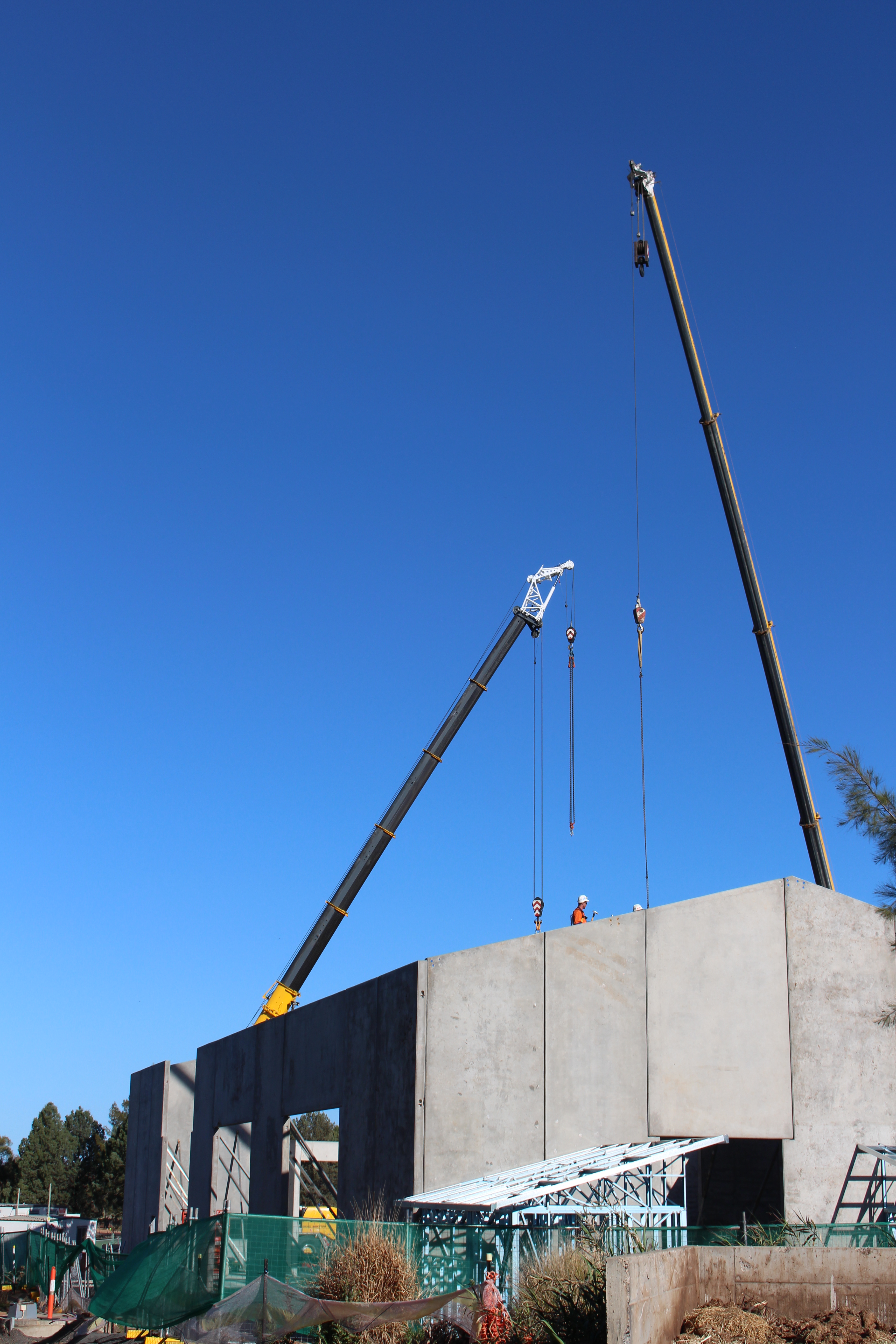 Over the past month, 35 concrete panels ranging in weight from 6 to 18 tonnes have been lifted into place by a large crane. These concrete panels make up the walls of the new barn, which is being built for the four Asian Elephants that will be coming to Dubbo from Taronga Zoo next year.