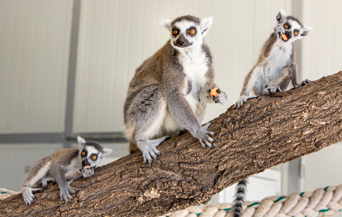 Now that they’re relying on solid foods more than milk, they’ve started to figure out which foods are their favourites, and to no one’s surprise, banana has come out on top! Lemurs grow and develop quite quickly for primates, so they should be fully weaned in the next couple of months. Mums have started to occasionally stop the babies hitching free rides on their backs, which is fair enough because with twins of this age, each female is carrying around an extra kilo or more. Though this hasn’t been without protest from the youngsters!