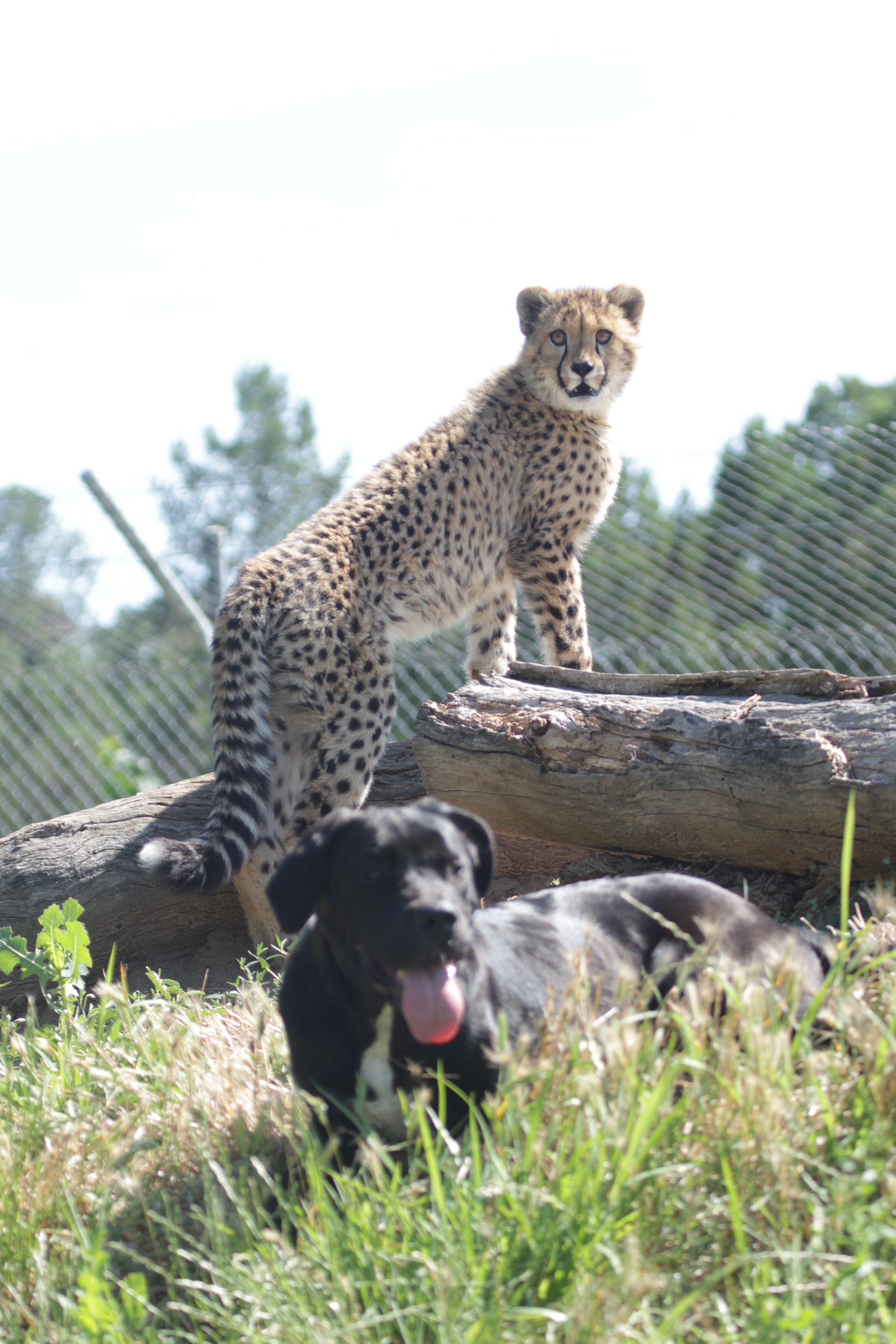 As part of the hand-raising process, Keepers introduced puppy Iris early on as a companion, and the two have been great friends ever since. Although Iris outweighs the Cheetah cub in stature, Siri makes up for it in speed and agility, so they continue to develop evenly matched. The pair rumble and tumble together every day. Their favourite thing is to play fetch, although Siri is a lot quicker than Iris.