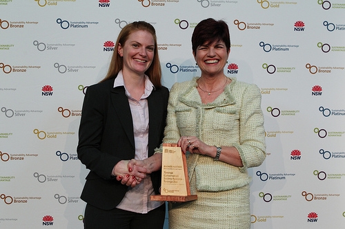 Taronga Zoo was recognised as a Bronze Level Partner of the NSW Government Sustainable Advantage Program on Monday 23 July.The award was received for Taronga’s demonstrated leadership and commitment to business sustainability and for achievements such as measured reduction in water and energy use and an increase in the diversion of waste from landfill over the last 12 months.Minister for Environment, the the Hon. Robyn Parker MP, presented Taronga’s award to Taronga’s Environmental Sustainability Manager , Emma Schaefer, who accepted the award on behalf of the Zoo.