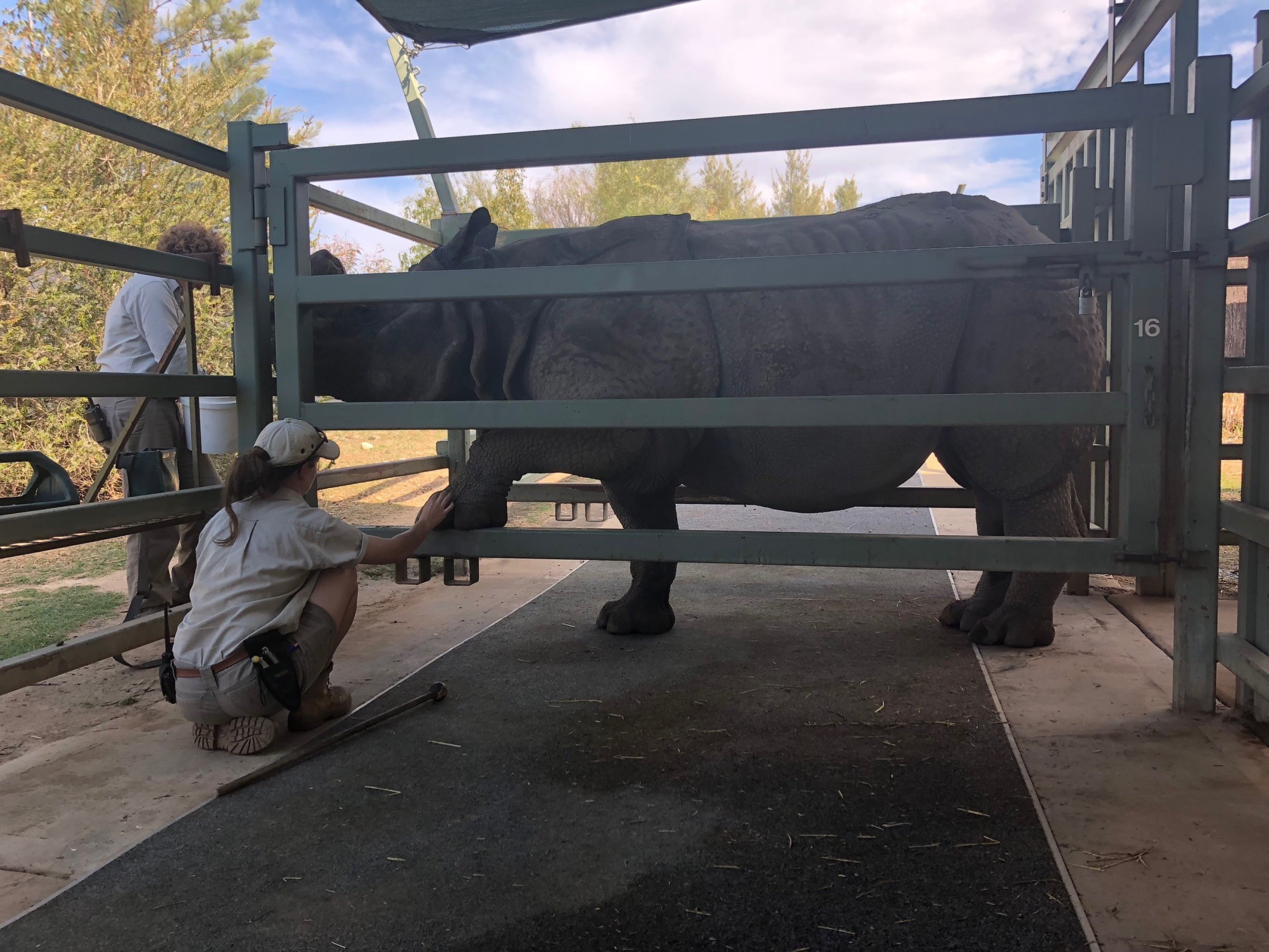 A lot of time has also been spent training and conditioning Dora, our Greater One-horned Rhino. When Dora was young he had some problems with cracks in the souls of his feet, a common problem for this species. Through lots of hard work, dedication and patience his keepers are now able to have Dora present his feet for daily pedicures and foot soaks to prevent this from happening in the future.