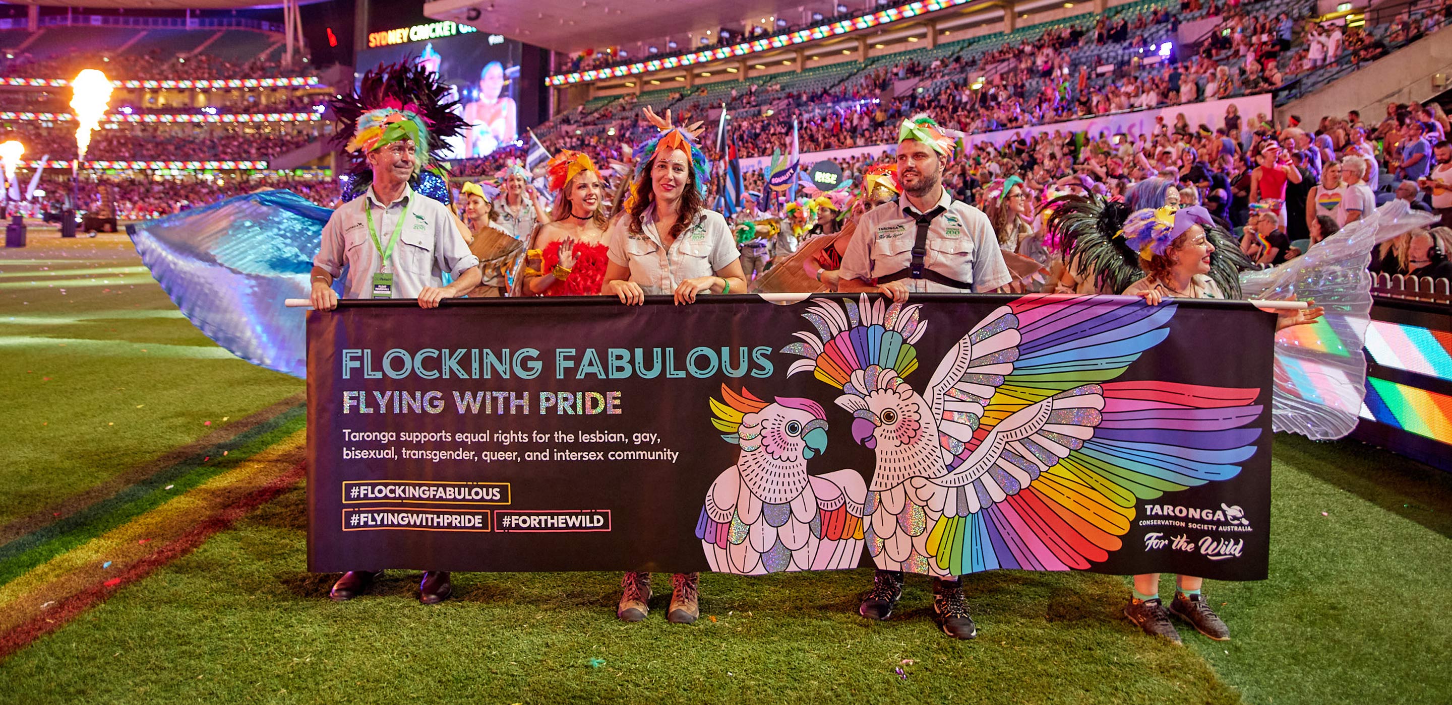 After countless afternoon rehearsals, copious hours of vigorous arts and crafts, and a whole lot of biodegradable glitter Taronga’s rainbow flock was ready to join the 5000 plus participants for an electrifying performance at renowned SCG in Moore Park.